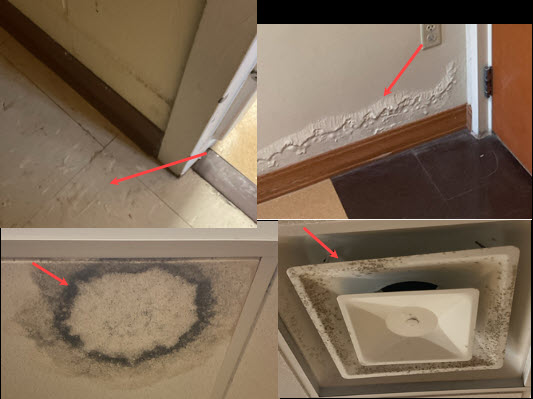 While mold was clearly visible in many photos taken by the City, its report soft-peddled the mold issue. However, a look at the City photos reveals mold in many of them.