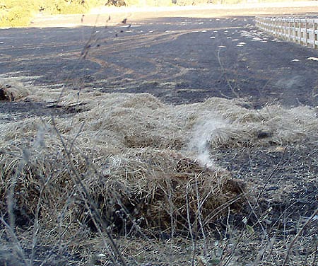 Smoldering hay six hours later.