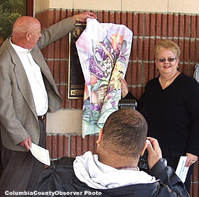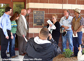 Most all of Columbia County's upper echelon appeared for Friday morning's 10 o'clock, by invitation only, dedication of the new, but not quite ready for prime time Columbia County working family financed public library branch in Fort White. The event was staged for the benefit of outgoing Commissioner Dewey Weaver, because in the words of County Manager Dale Williams, "They're doing this for Dewey because Dewey's going to be gone." No one from the public was invited and neither was the Observer.