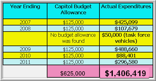 The $488,660 Sheriff Hunter claims to have spent on vehicles in 2009 appears to be an all time Columbia County record.