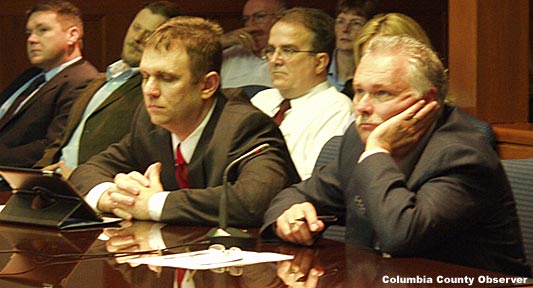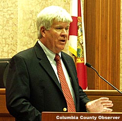 COLUMBIA COUNTY, FL – This past Friday afternoon, October 19, 2012, the two candidates for State Attorney, Third Judicial District, Bill Brannon and Jeff Siegmeister, met in Columbia County’s Courtroom One for one hour to present themselves and answer questions prepared by the Florida Association of Criminal Defense Lawyers. The candidates played to a packed house and the audience of over 100 overflowed up into the balcony. The State Attorney’s Office is responsible for a $4,000,000 plus budget and 65 jobs. Many people in the audience were State Attorney Office employees. Some were job seekers. The Circuit’s Assistant State Attorneys serve at the pleasure of the State Attorney.