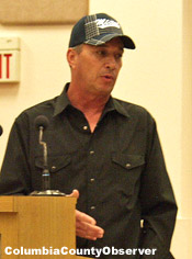 The husband (acoustic issues made his name unintelligible) of the owner of the Rock Star Lounge in Lake City spoke in favor of the ordinance. He said he is doing his part for safety and drunkenness is not "put up with" in his establishment. He mentioned the first speaker, Bill, who he said is the owner of the County Line Bar in Columbia County also does his part for safety.
