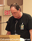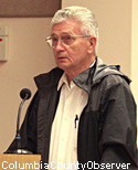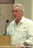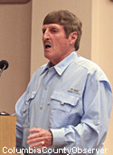 Long time Columbia County developer and investment property owner, Richard Cole, came to the microphone and introduced himself. He said his property adjoins the County Industrial Park and everything on the North border is industrial. "I think it [industrial zoning] fits exactly the area where we put it."