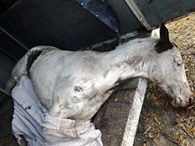 At 1:53 pm on December 3, Barbara Haake emailed Ms. Buchanan four pictures of the horse that was hit in the road. One of the pictures had the horse's guts hanging out.