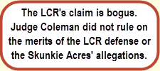 The Lake City Reporter wrote: "A small claims case filed by the owners of Skunkie Acres was dismissed because the newspaper did nothing wrong, based on the allegations and supporting documents." This was not true. The court never found that the Lake City Reporter did nothing wrong. The case was dismissed for failure to state a claim or cause of action. There was no ruling on the allegations.