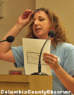 Merrillee Malwitz-Jipson from Our Santa Fe River mentioned she was confused about the order of the meeting. Then she got down to business. "I'm a little concerned about the Falling Creek Project. I understand that Noah is going to address this."