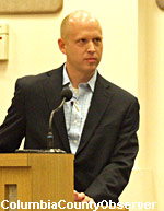 COLUMBIA COUNTY, FL – Last night's meeting of the Columbia County 5 saw the new Suwannee River Water Management Executive Director, Noah Valenstein, introduce himself to the County. In spite of a few glitches by Chairman Nash, all the questions brought to the meeting by the public were answered by Mr. Valenstein, who demonstrated he wasn't afraid to answer questions and showed a command of the issues facing the Water Management District.