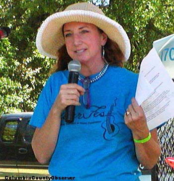Before addressing the crowd, Ms. Malwitz-Jipson spent a few quiet moments in the shade of an old oak tree listening to the original music.