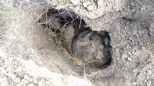 in a 4 to 5 foot deep hole in a pasture off SW County