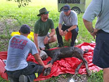 Columbia County Fire Rescue crews from Stations 45 and 48 responded and found the horse in serious distress. One of the firefighters knew a local equine veterinarian, Dr. Natalie Lamneck of High Springs.