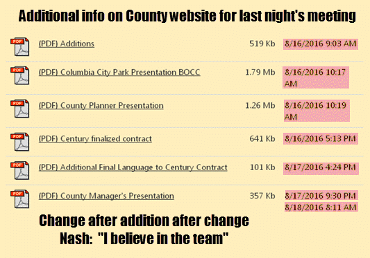 COLUMBIA COUNTY, FL – Again notable in the run-up to yesterday's meeting of the County 5 was County Manager Ben Scott's inability to prepare or have prepared meeting materials on the Friday before County Commission meetings. The County management and the County 5's inability to follow their guidelines and rules were particularly evident last night with late information, walk-ons, and last minute contract information for Century Ambulance. Last night, Commissioners DePratter and Nash were joined by Commissioner Phillips in their displeasure at the lack of timeliness of County materials. So far these complaints have proven to be nothing more than a charade.