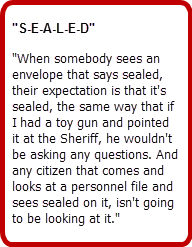 Your reporter answered, "When somebody sees an envelope that says sealed, their expectation is that it's sealed, the same way that if I had a toy gun and pointed it at the Sheriff, he wouldn't be asking any questions. And any citizen that comes and looks at a personnel file and sees 'Sealed' on it, isn't going to be looking at it."