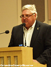 County 5 Chairman Ron Williams had a list and a script. He called the Ag Folk to the microphone one by one and one by one they came, talking farmer's land rights; the problems with the ordinance; the illegality of the ordinance; you're going to be sued if you enact this ordinance; we don't need the ordinance, and "Why can't we just get along?" without the ordinance.