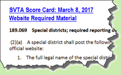 In section 189.069 (Special districts; required reporting of information; web-based public access), the Florida Legislature and the Governor brought special district reporting into the 21st century.