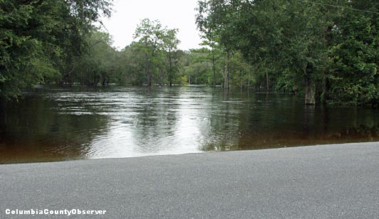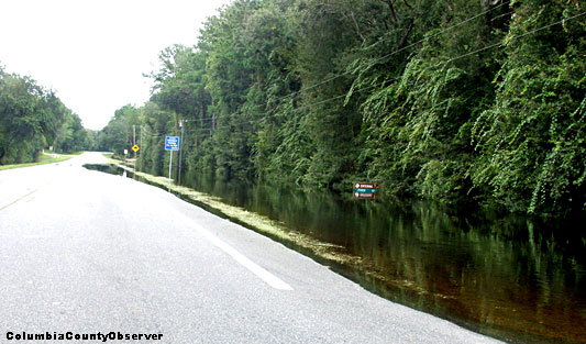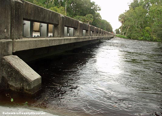 COLUMBIA COUNTY, FL – The Santa Fe River began receding yesterday afternoon giving hope to residents at the south end of Columbia County that they may be able to leave the County sooner, rather than later. The water, rushing down the river at breakneck speed, was lapping at the bottom of the roadbed on the Santa Fe River bridge on U.S. 27 yesterday afternoon.