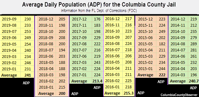 ADP at the County Jail was trending downward