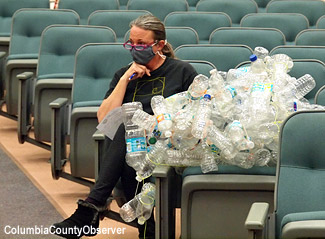 COLUMBIA COUNTY, FL – As the curtain drew down on yesterday's legislative delegation meeting, the environment, a bellwether issue for Florida, was brought front and center by environmentalist and springs protector Merrillee Malwitz-Jipson. Strikingly, she let everybody know that bottling Florida's spring water is also about the bottles.