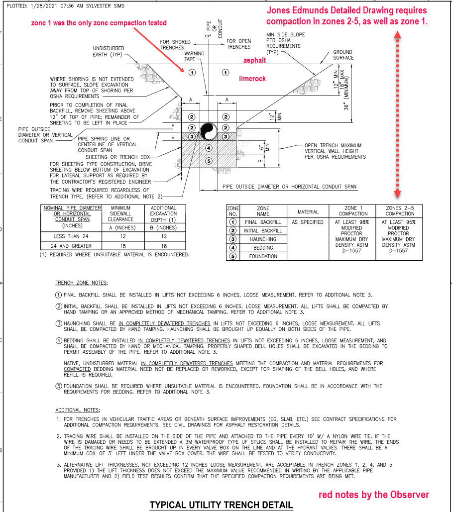 The email included spec sheets/drawings which showed compaction schedules for the wastewater project pipe installation and the following note: