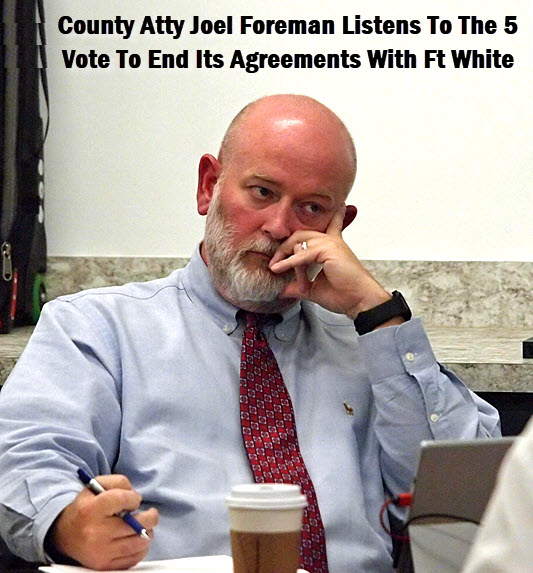 COLUMBIA COUNTY, FL – The November 3 Columbia County – Fort White joint meeting kicked off with Fort White in Commissioner Ronald Williams' prayers, "Father, we always need your help and your guidance… We were hoping that the Town Council of Fort White would be here." They weren't, and the County knew that the Town Attorney and Mayor would not be attending the meeting. It did not make a difference. The County 5 was marching on.