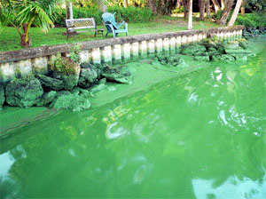 Caloosahatchee River with green slime.