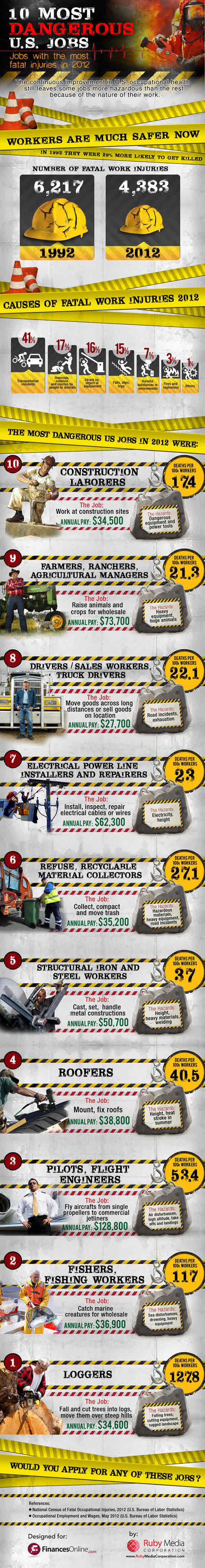 Surprisingly, firefighting and police work, two jobs with extremely hazardous environments are not on the list proving that with enough safety measures and foresight even America’s ten deadliest jobs can be less deadly after all.