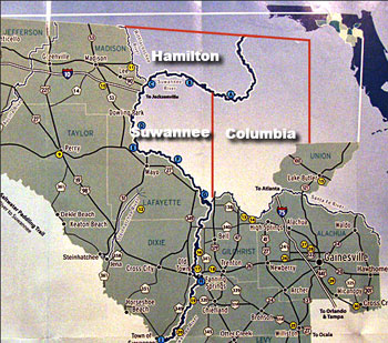 the three counties in the heart of the Suwannee River