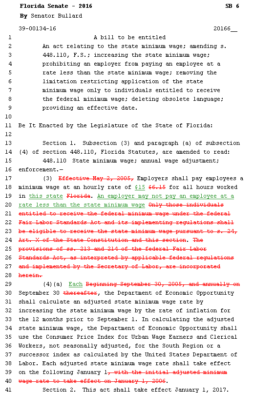 Senate Bill 6: Increases the minimum wage to $15 in FL.