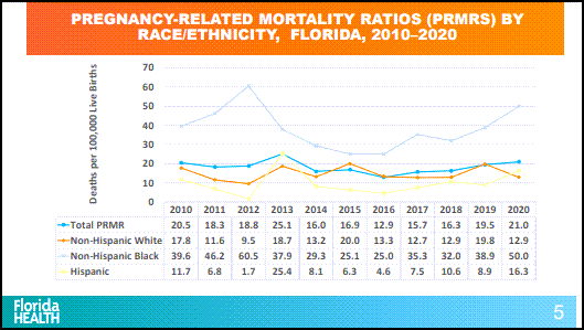 Florida reported the state's pregnancy-related mortality rate has increased every year since 2016.