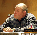 Board Chairman Koby Adams is Florida Representative Elizabeth Porter's chief legislative aide. His working time is now spent in Tallahassee and he explained that he was unable to attend the workshop scheduled for March 28. He said, "I would like to get it settled tonight. I know for a fact and seen him work. He puts in the hours that he says he puts in.... I understand this nit picking going on. I understand there is personality conflicts."