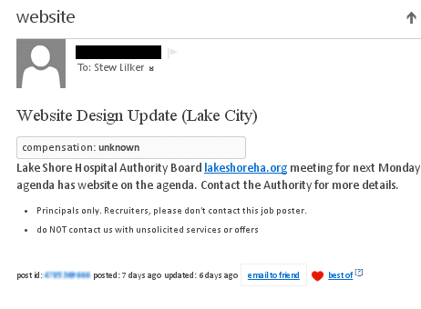 It is not clear if Manager Berry gave copies of the purported Craigslist advertisement(s) to the Board.