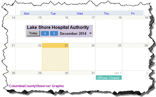 Over the years, the Lake Shore Hospital Authority has claimed that it follows the policies of Columbia County. In October, Columbia County's HR Director, Lisa Roberts, asked the County 5 to change the County designated holiday of Christmas Eve to the day after Christmas for this year, as Christmas falls on Thursday. Ms. Roberts made the request "in order to provide employees an extended Christmas holiday weekend."