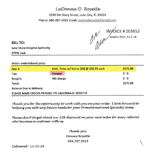 In last month's Lake Shore Hosp Auth consent agenda was an account payable item with a simple memo: "SHIRTS – JACK." The complete consent agenda, which includes the check register is not available at the Hospital Authority meetings for inspection. That has been suggested and ignored.