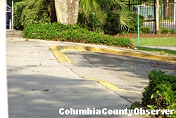 The newspaper got one out of three. Mr. Kitchens was not trying to roll over "bumps in the road." In one photo, Mr. Kitchens' wheel chair is sitting in a pool of water in traffic due to the lack of sidewalks. In the other, he is trying to enter the street from the sidewalk at the handicapped cross walk when his wheel chair was stopped by Lake City's raised roadway. Both of those issues are issues that City Manager Wendell Johnson has refused to address.