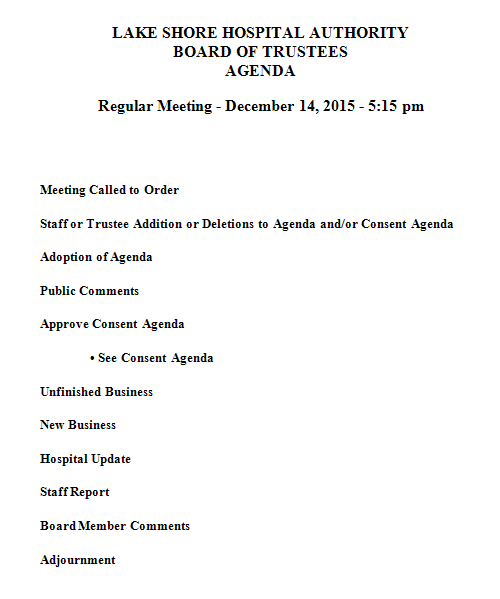 Public Record Issues & Rudeness Continue to Plague the Lake Shore Hospital Authority in 2015