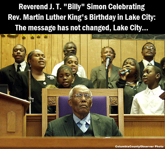 LAKE CITY, FL – In 2011, the MLK day celebrations were a celebration of a life well lived. Today, Lake City is a City with the "Scarlet Letter." It has gone backwards in time. Had the Columbia County/Lake City community heeded the words of Reverend Joy L. Gallmon, Reverend J. T. "Billy" Simon, and Dr. King, Lake City/Columbia County would not be where it is today.