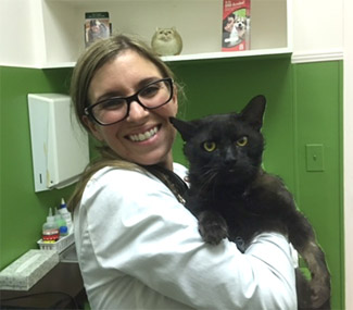 Veterinarian Kelly Saporito with a healthy Amos the cat.