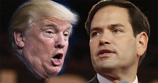 “A noun, a verb and Donald Trump. That’s his answer to everything,” Rubio said.