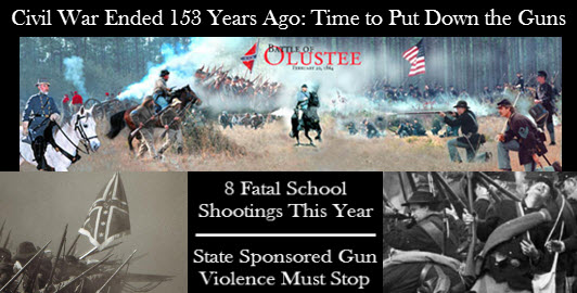 COLUMBIA COUNTY, FL – Another senseless act of gun violence, another mass shooting, has gripped the country and the world's attention. This weekend, Columbia County again celebrates the victory of the South over the North at its annual Olustee Festival and Battle Reenactment. Last night, your reporter and publisher asked one of the Festival-Battle Reenactment's sponsors, the County Commission (the Columbia County 5) to ask the warring parties to not shoot it out, but to lay down their guns in respect for the victims of the Parkland shooting – a cease fire.