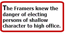 The Framers knew the danger of electing persons of shallow character to high office. They had, after all, dealt with the insanity of George III and had learned the necessity of avoiding unfit persons.